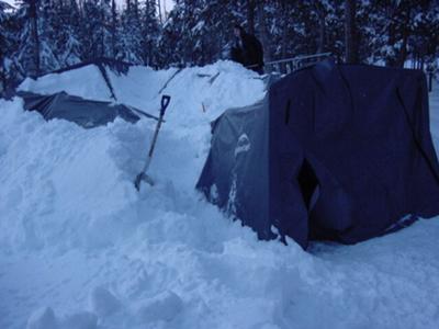 People with large amounts of snow should remove as much as possible, and completely from those temporary shelters. Mine was set up in November and cleared each snowfall, but the latest was too much for it. We received approximately 70cm. of the white stuff, not even half thewas left on the Tempo with the winds.